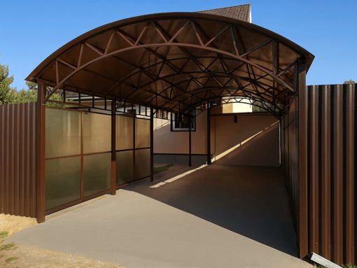 Клиент может заказать навес для автомобиля из поликарбоната в типовом исполнении или в виде индивидуального проекта. Все конструкции адаптируются под компактных или больших участков, а также сочетаются с архитектурой дома. Возможность купить навес для автомобиля из поликарбоната недорого зависит от выбранной формы, толщины покрытия и длины пролета.
